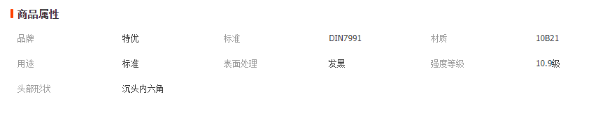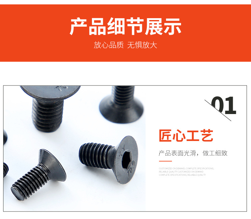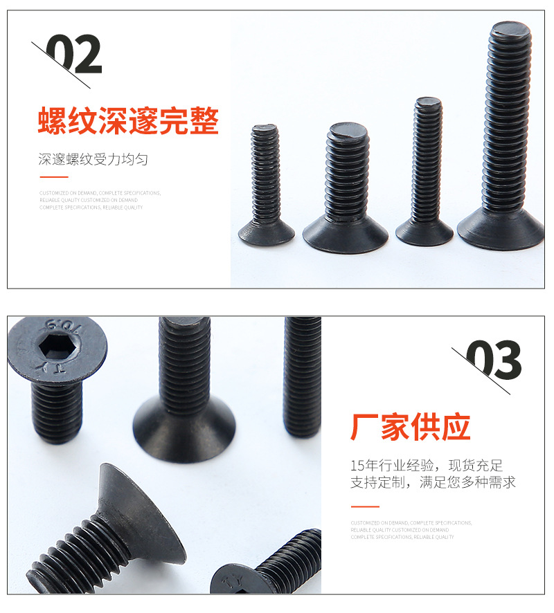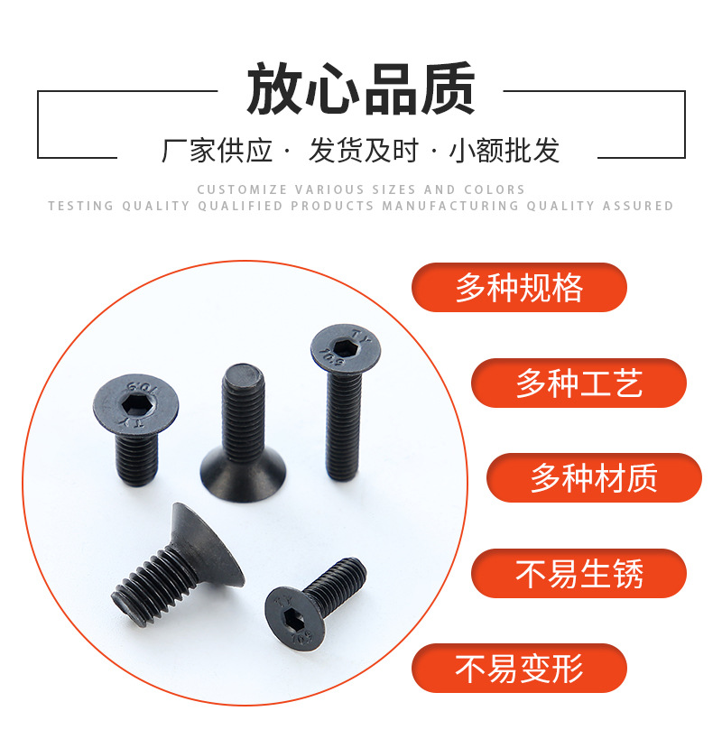 (DIN7991)碳钢10.9级发黑高强度沉头内六角螺丝批发 含税价