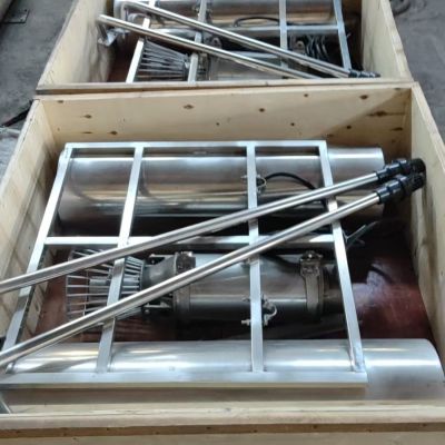 5、潜水式流曝气机采用优质的SUS304 不锈钢制造,完全耐各种腐蚀性水体。推流曝气机由专用电动机、叶轮、浮筒、浮筒底座、吸气室、吸气管、专用保护开关等组成。产品结构紧凑、高性能、低损耗、重量轻、安装简单、操作方便,射流喷气角度可跟据需要来调整,可向上下自由调节60 度(适合各种池底),工作区域的水体深度不得浅于0,50 米(自然底)。 快盈官网入口。
