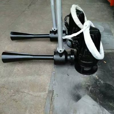 (6)潜水曝气机电机设备通过改变方立柱上分度盘的插销孔位,即可在120°的范围内调节方向,起吊架可360°旋转,能方便地将主机起落在安装平台上,可吊放主机,也可将曝气机提升至水上进行维护,保养, 采用电动卷绕装置 快盈ios版,设有自锁机构,提升链采用不锈钢钢丝绳,螺栓,螺母,垫圈采用不锈钢材质。