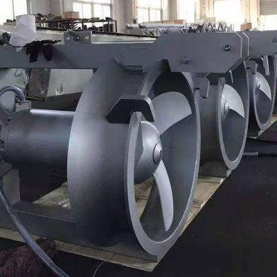叶轮为三片式,叶片宽度大,侧面薄,表面平滑,并且为后掠式,具有自洁功能确保了搅拌器的高效、无堵塞运行。