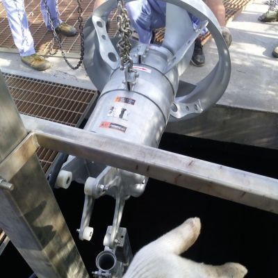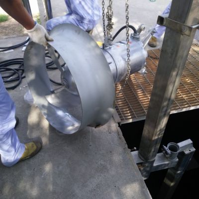 潜水搅拌机螺旋桨叶为水力平衡无堵塞后曳设计。